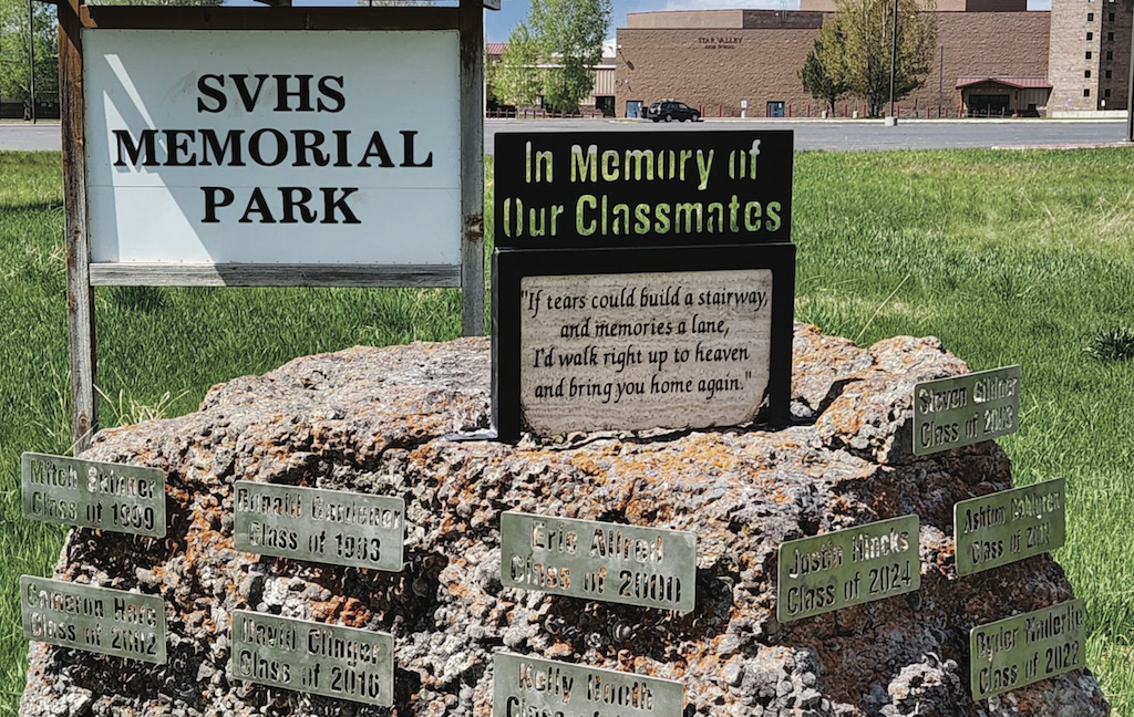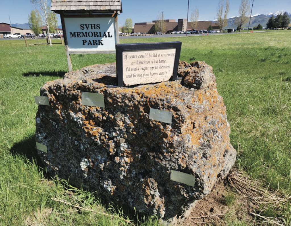 Star Valley High School had done just that. Sometime, years ago, a memorial space for students who had passed away during their school years was installed on the school’s south lawn between the student parking lot and Swift Creek Lane. This enormous boulder bore four plaques inscribed with the names of students who had been lost in their school years.