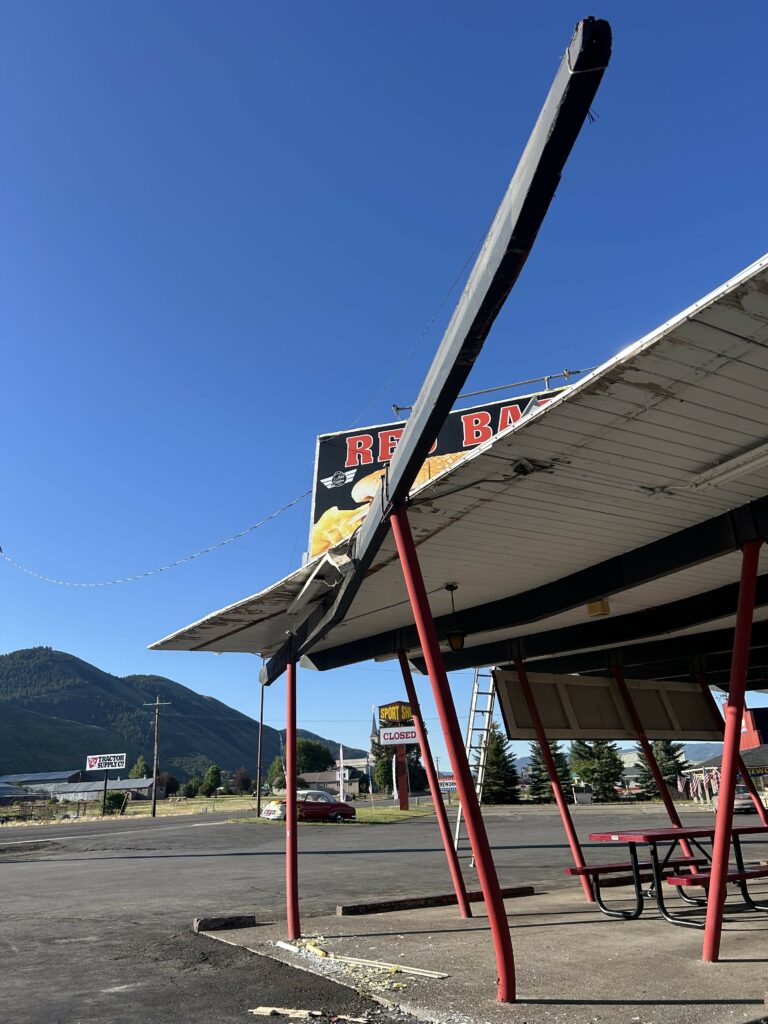 Ben Daniel, owner of the restaurant, said that on Saturday, July 5, two female visitors from Spain ran into the end of the awning with their rented R.V. just after closing time. Daniel said no one was hurt and despite some damage to the awning the Red Baron is open for business.