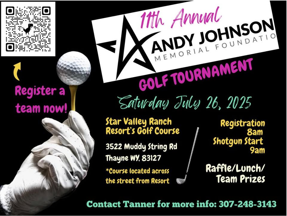 Tanner Johnson, brother of the late Andy Johnson, stepped into the studio during First Bank of Wyoming Sports Friday. Johnson discussed the 11th Annual Andy Johnson Memorial Golf Tournament which takes place July 26 at the Star Valley Ranch Resort Golf Course. Anyone who would like to participate can scan the QR code below or click here.