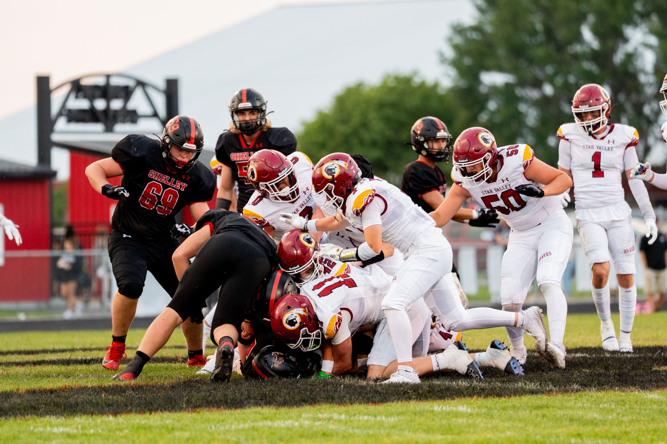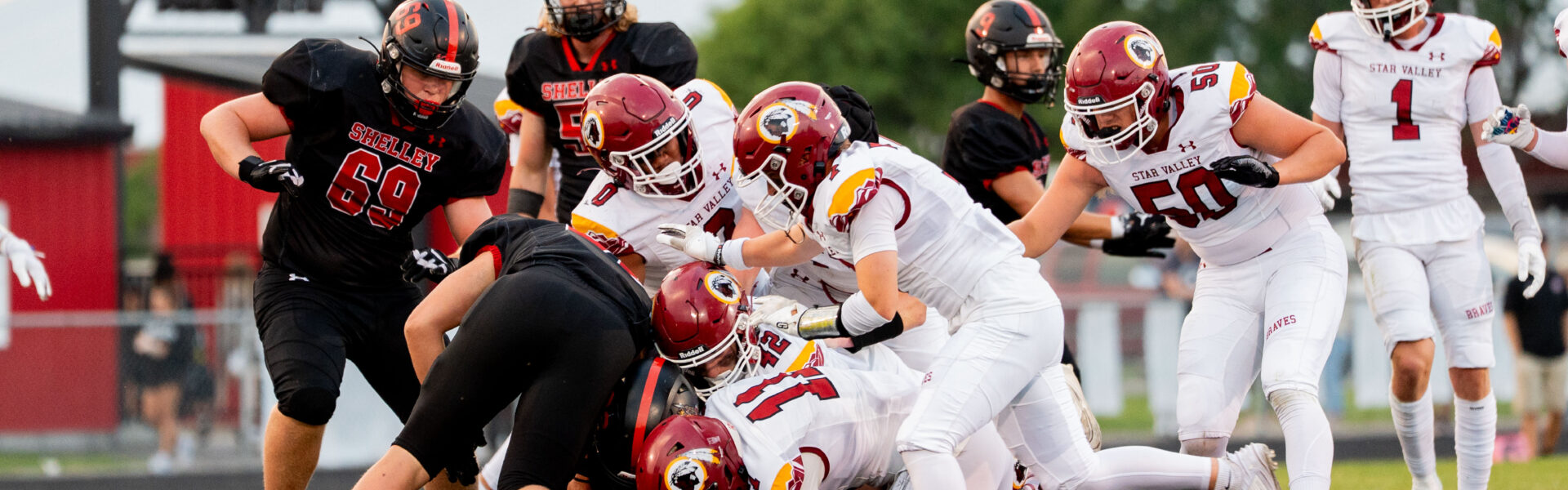 The Star Valley Braves jumped on the Shelley Russets early with a 20-point first quarter and then gradually pulled away for a 33-7 final in the second half to open up the 2025 football season.