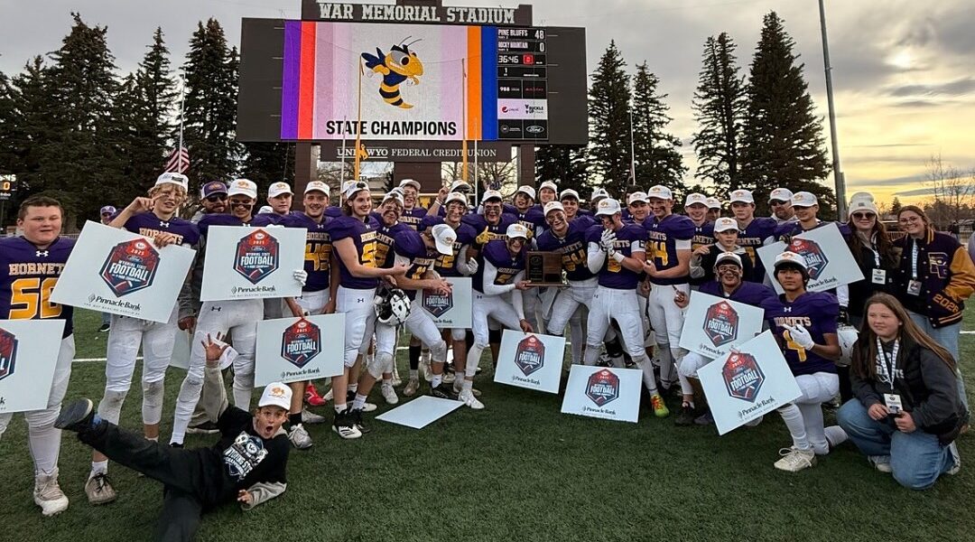 Pine Bluffs defeated Rocky Mountain 48-0 in the WHSAA 2025 1A-9 Man State Football Championship at War Memorial Stadium in Laramie.