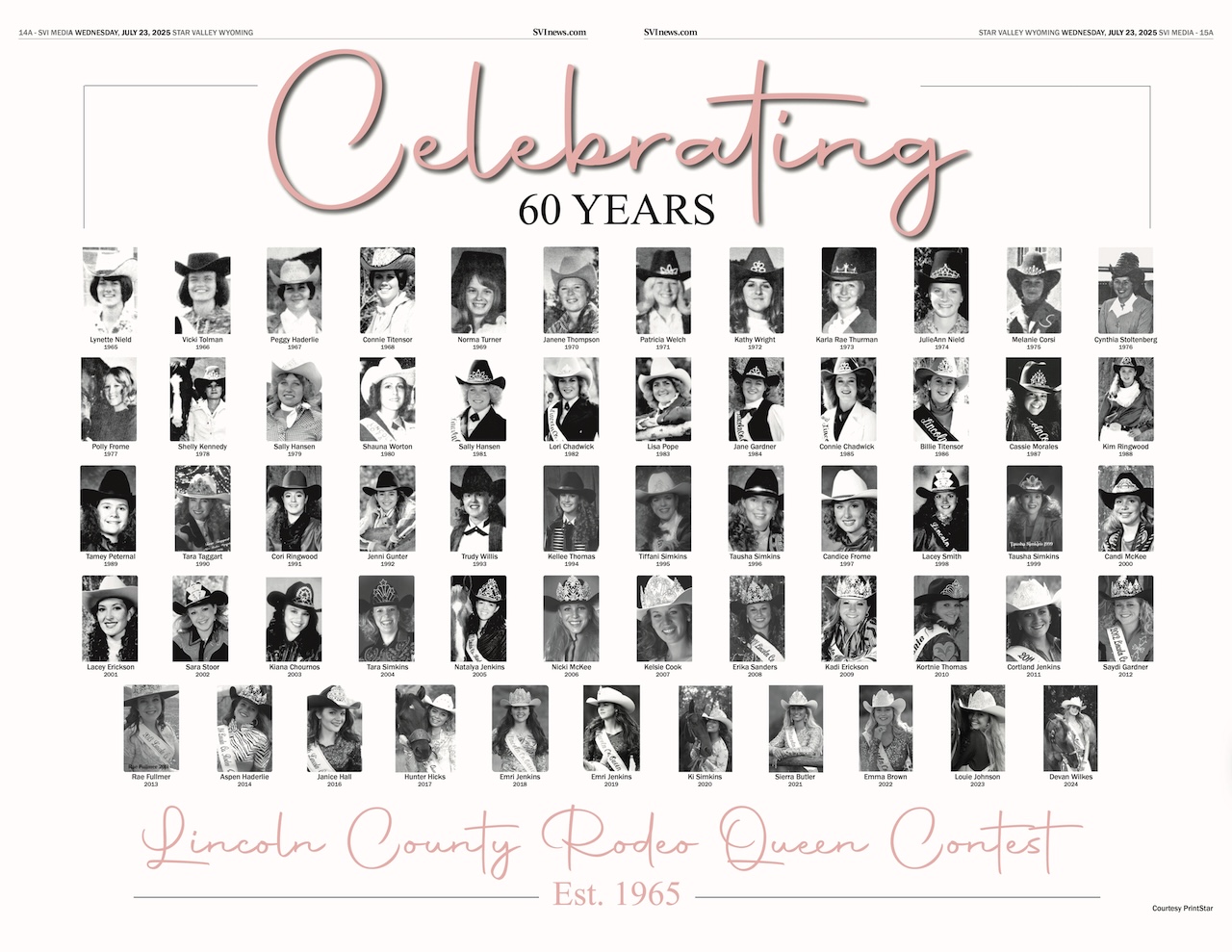 The commemorative 60th anniversary poster, which can be seen on pages 14A–15A of the July 23, 2025 edition of the Star Valley Independent, features a collage of past royalty, showcasing decades of local women who have helped carry on that tradition.