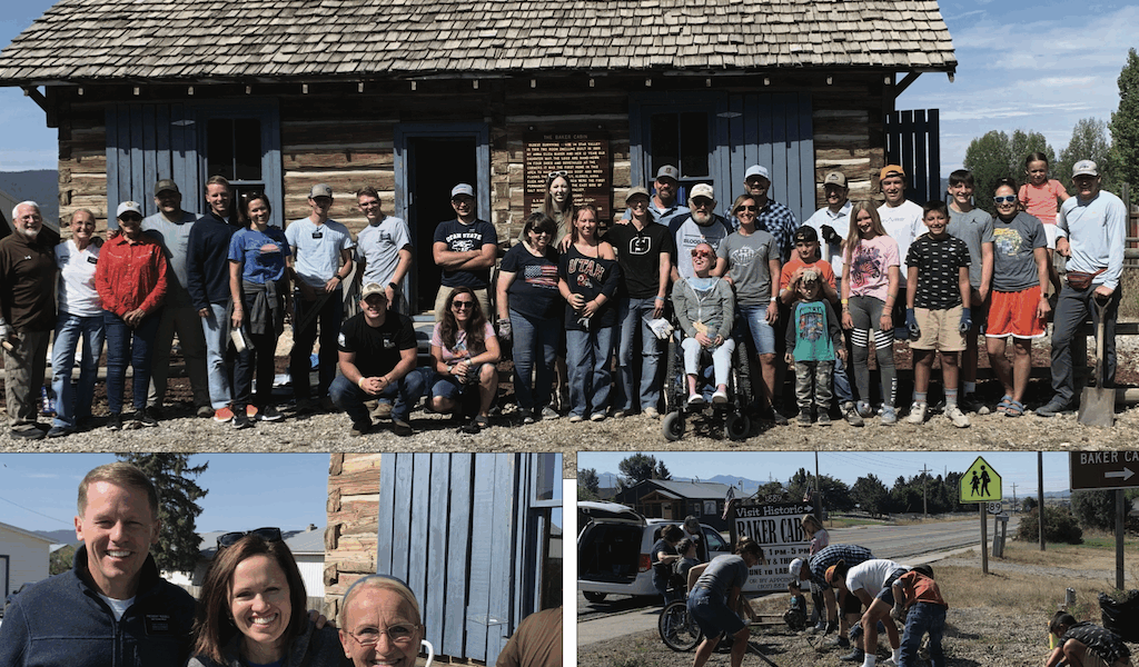 The historic Baker Cabin, a landmark in Etna and the oldest surviving home in Star Valley, was recently given a face lift thanks to a community service project organized through JustServe. Volunteers spent the day refurbishing shutters and doors and giving the grounds a much-needed landscaping cleanup to preserve the site and its history.