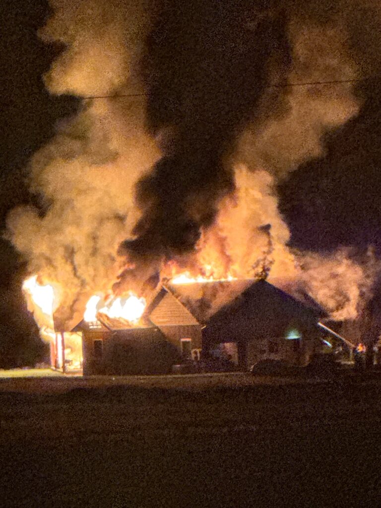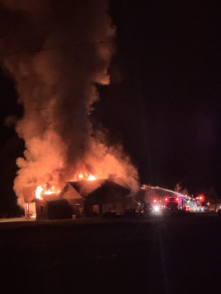 “By the time we had a tanker truck set there were already flames coming through the roof,” stated Fireman Toby Merritt who was one of the first on scene. “There was enough wind that once it caught hold of the fire it took off.”