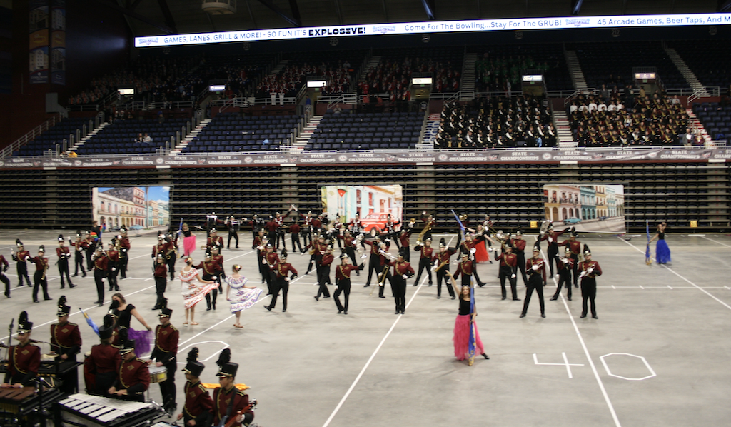 Two judges scored bands for marching and maneuvering, while two different judges scored for music execution. Two additional judges specifically scored the color guard and one judge scored percussion. “You combine all of those scores together for your total ranking and score.”