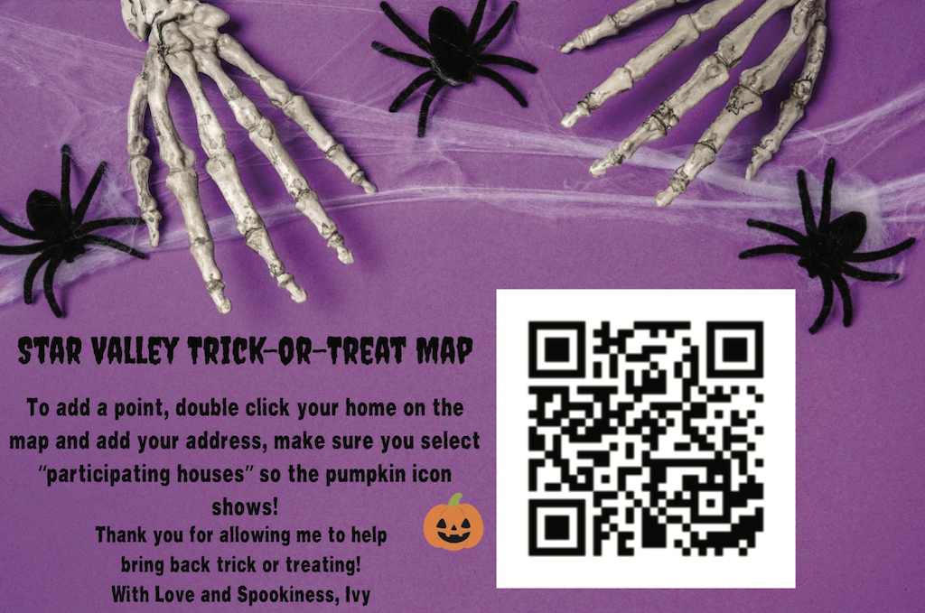 A Star Valley trick-or-treat map is available online for anyone who is looking for a traditional door-to-door Halloween with their families, but are not sure which doors to send their children to.
