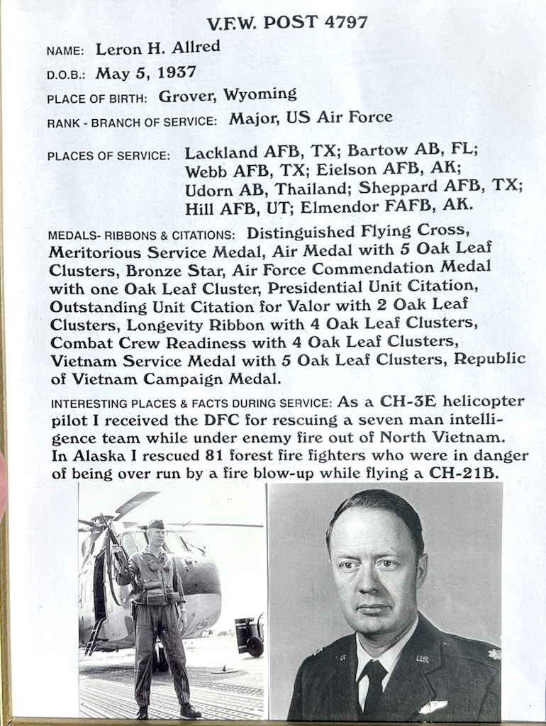 Twenty years of military service with assignments in Texas, Florida, Utah, Nevada, Alaska and southeast Asia were acknowledged earlier this year when Leron Allred of Star Valley, a retired major and command pilot in the U.S. Air Force, was invited to be a part of an honor flight program to the nation’s capital in September.