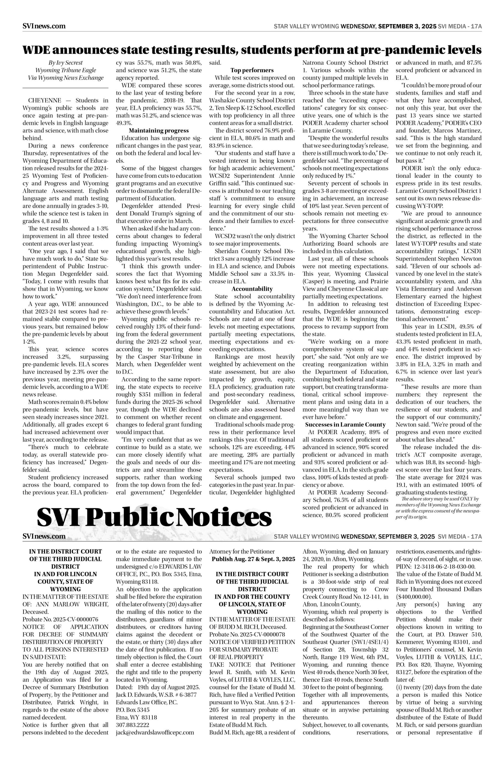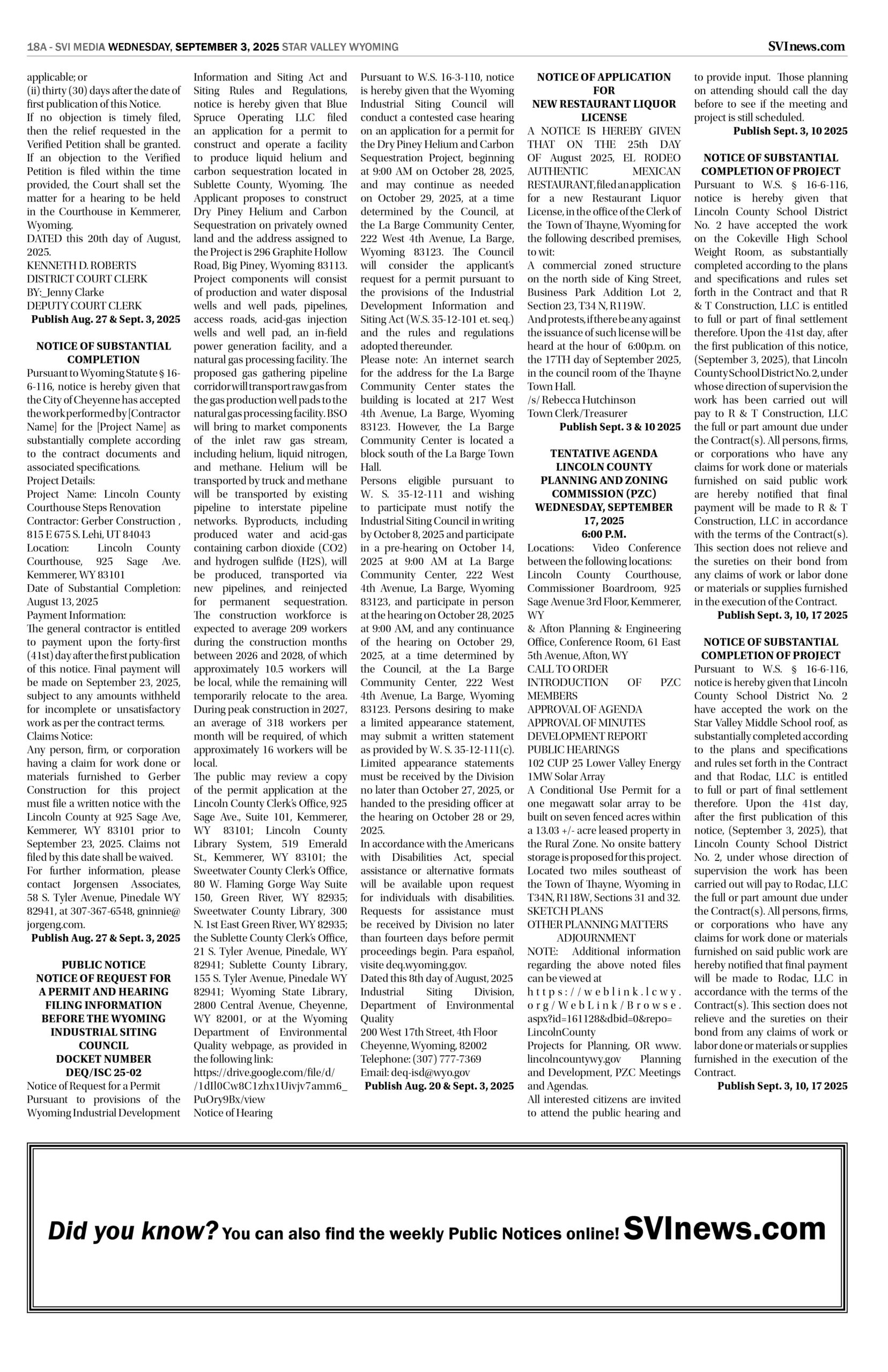 HomepagePublic NoticesSeptember 3, 2025 Star Valley Independent Public Notices Public Notices September 3, 2025 Star Valley Independent Public Notices Amanda Nelson Posted on September 2, 2025 Post Views: 1,626 Let us know what you think! +1 0 +1 0 +1 0 +1 0 +1 0 +1 0 Post navigation Previous PostCowboys Host Northern Iowa on Saturday in a Gold Out of War Memorial Stadium Next PostAlpine Master Plan gathering stakeholder input You Might Also Like Featured Cowboys Set to Battle Austin Peay on Tuesday Evening SVI Staff November 10, 2025 Featured Star Valley celebrates 50 years of local Messiah productions Janet Erickson November 7, 2025 Featured Visser nabs All-American status for Weber State Dahl Erickson November 28, 2025 Featured SVI Radio Interview: Major Leron H. Allred- Honor Flight Duke Dance November 11, 2025