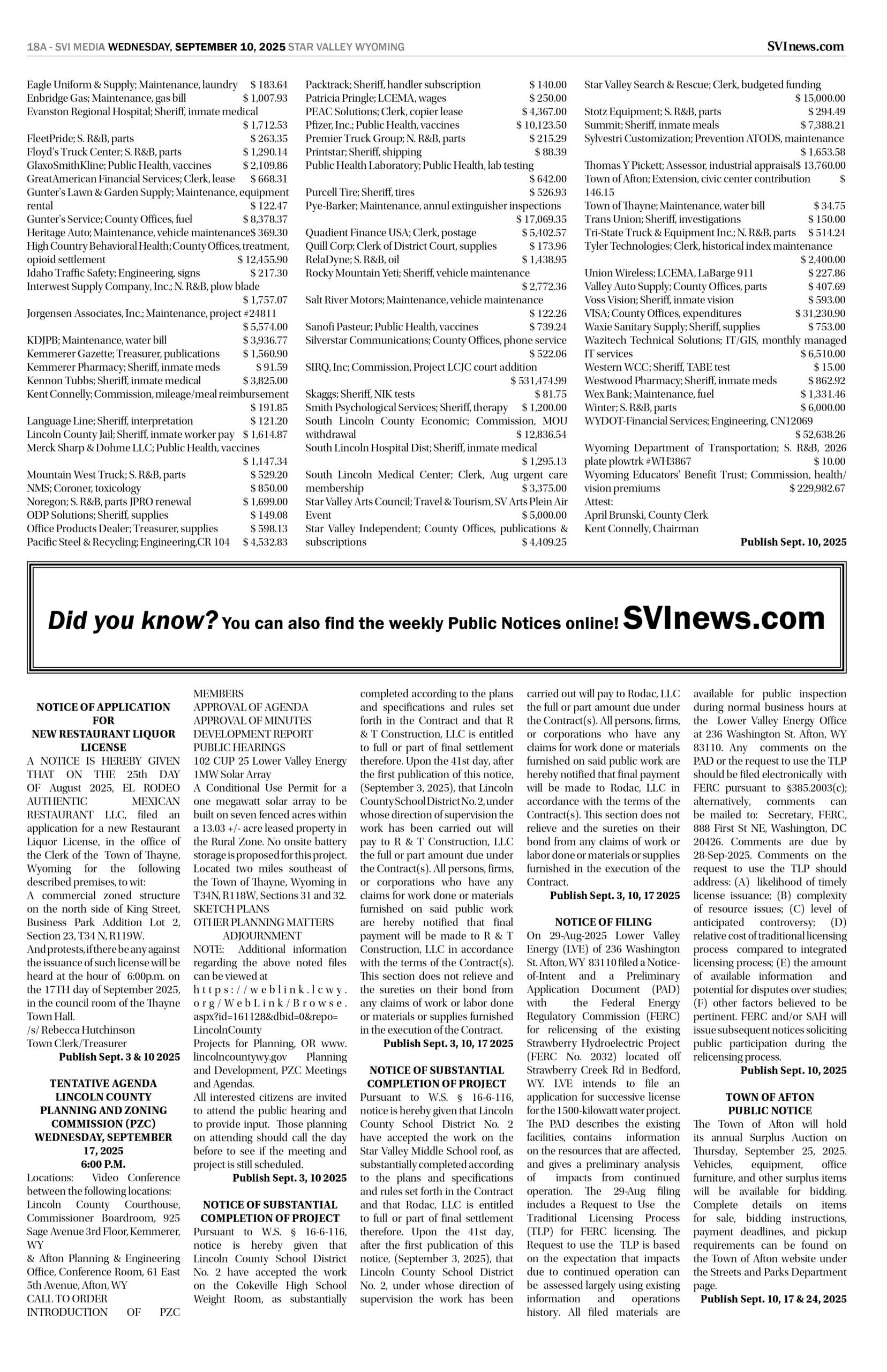 HomepagePublic NoticesSeptember 10, 2025 Star Valley Independent Public Notices Public Notices September 10, 2025 Star Valley Independent Public Notices Amanda Nelson Posted on September 9, 2025 Post Views: 1,217 Let us know what you think! +1 0 +1 0 +1 0 +1 0 +1 0 +1 0 Post navigation Previous PostMan faces federal charge in killing of Ukrainian woman on Charlotte train Next PostAlpine Charter School works with town on permitting process You Might Also Like Sports Leland Walker, Jared Harris lead balanced attack for 4-0 Pokes SVI Staff November 17, 2025 Interviews Sports Friday Interview: Adam Calkins, Kemmerer Hockey League Duke Dance November 21, 2025 Featured SVI Radio Interview: Jack Edwards, Kids Christmas Coloring Contest Duke Dance November 17, 2025 Featured Independent Notes: The youth are good examples. Dan Dockstader November 23, 2025