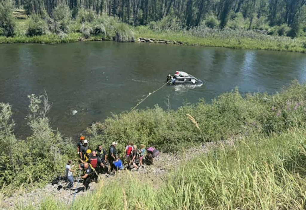 Bonneville County Sheriff’s deputies, the BCSO Dive Rescue Team, Idaho Falls Ambulance, Swan Valley Fire and Jefferson Central Tech Rescue Team all responded to the incident. Bystanders in the area, including a BCSO Deputy camping nearby, also assisted in safely securing the van in the current and extricating the occupants. The Snake River Road was closed in that area for about two hours while emergency personnel and tow equipment retrieved the van from the water.