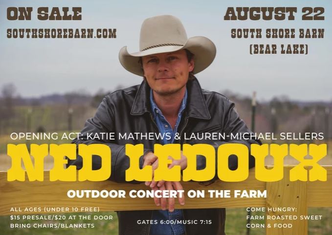 Wyoming native Ned LeDoux called into the Weekday Wake-up to promote his country concert at the South Shore Barn in Laketown, Utah. The event in the Bear Lake valley will take place Friday, August 22 with advance tickets on sale at SouthShoreBarn.com.
