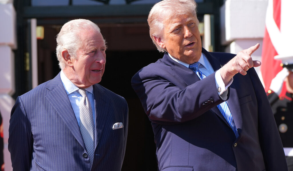 President Donald Trump and Britain’s King Charles III talk at the White House, Monday, April 27, 2026, in Washington. (AP Photo/Alex Brandon).