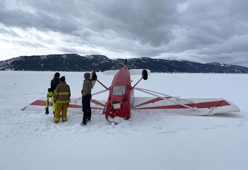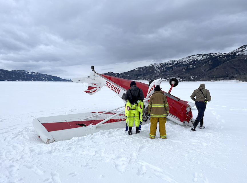 Bonneville County Sheriff’s Deputies responded to a plane crash this afternoon at the Palisades Reservoir about a quarter mile from the Alpine Airport. At approximately 2:30pm a caller reported seeing a small single engine plane upside down in the snow out in the reservoir lake bed. Emergency Personnel from Alpine Search and Rescue, Star Valley Fire and Ambulance also responded to the area.