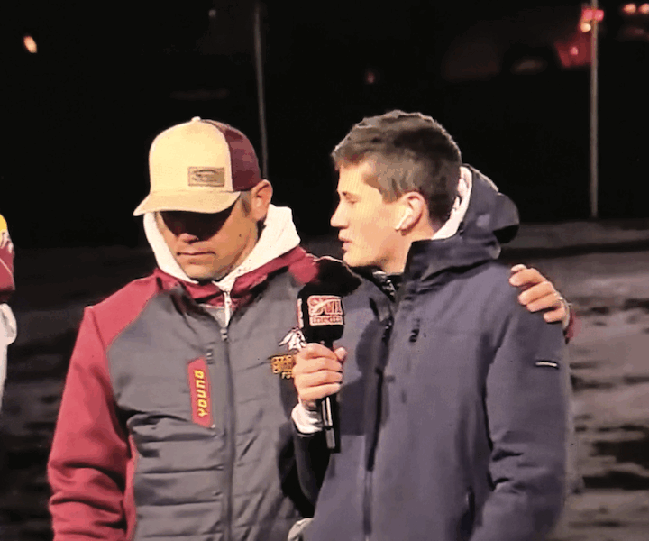 Gabe Daniel interviews Star Valley High School Football Coach McKay Young. SVI MEDIA PHOTO