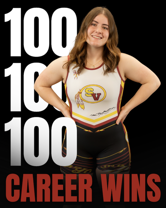 Three-time All-State wrestler and state champion, Cara Andrews was one of the SVHS seniors and was singled out for picking up 100 career wins. Both Andrews and Remington Aullman are state champs who will try and add another at the end of the month at the State championships in Casper on February 26-28.