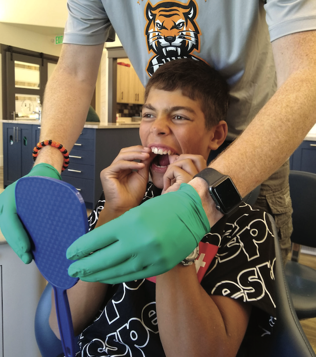 By the beginning of his eighth-grade year, however, Caleb’s weakened gum was splitting open, exposing the root of the unstable tooth, and Dr. Orton was concerned about the infection that was likely brewing. Bart and Janet began looking for a gum specialist and learned of Dr. Ethan Moulton at Ridge Crest Periodontics in Idaho Falls.
