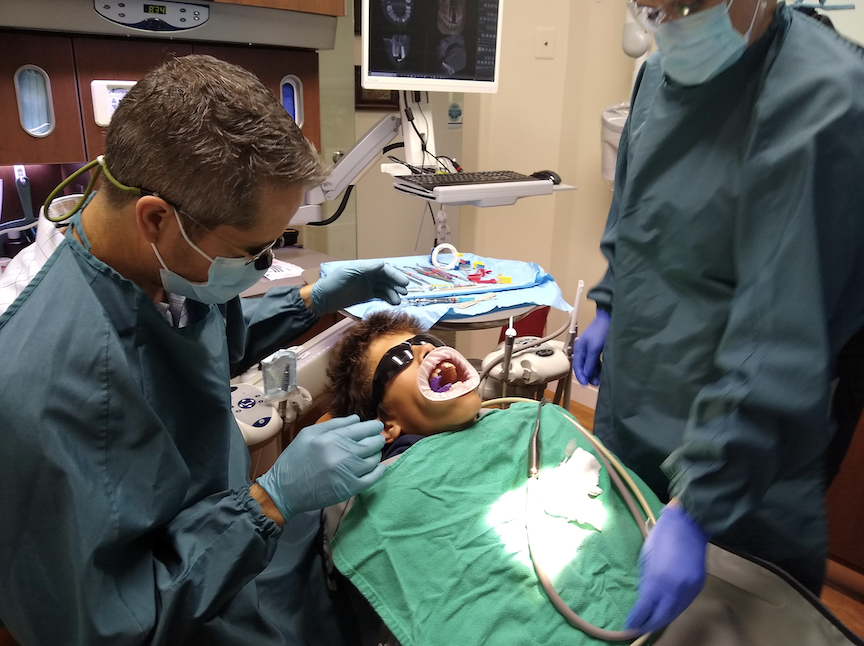 Moulton explained that he met regularly with a collaborative study group of dental professionals in Idaho Falls, and that “they had been learning about a cutting-edge procedure” used in Europe and Japan “called autotransplantation,” said Janet. “He felt they could take one of Caleb’s developing permanent molars on the lower left of his mouth that had not yet erupted through the gum and move it to the top front, replacing the lost incisor with a natural tooth from his own mouth. He and his study group felt that Caleb was a great candidate for the procedure.”