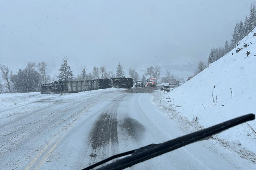 A semi-truck overturned near Alpine. | Idaho State Police
