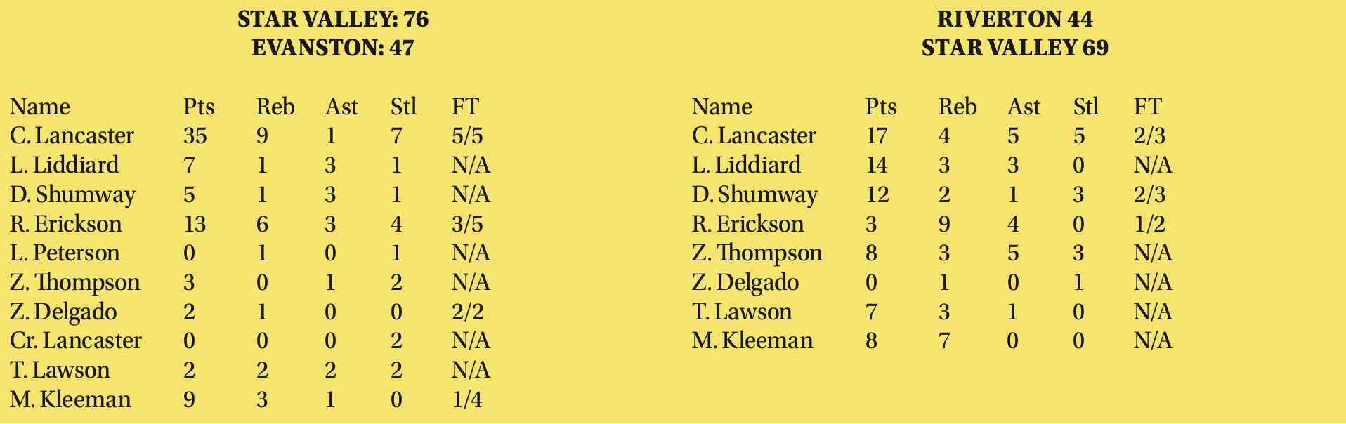 The Braves basketball team rolled to a pair of one-sided 4A Southwest quadrant wins over the weekend as they picked up a road win in Evanston on Friday night, 76-47 and then defeated Riverton on Saturday night on the home court, 69-47.