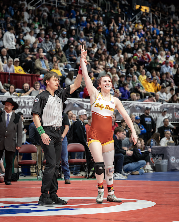 Senior Brooke Schwab (170) advanced to the finals and earned All-State and a runner-up finish after a finals loss to Cody’s Ashten Hubbs. Schwab wrapped her high school career as a three-time state placer.