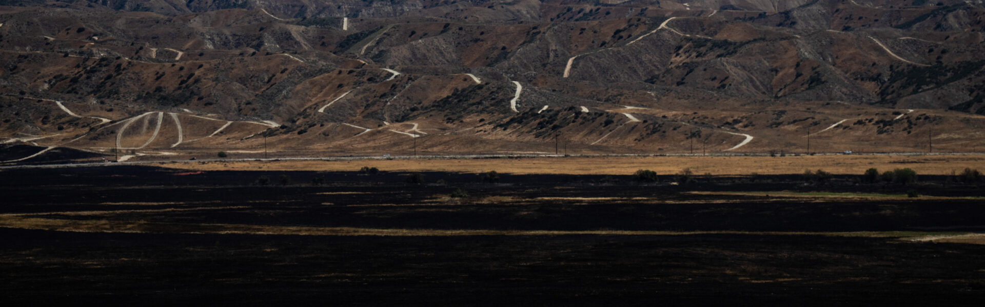 A charred field is seen after the Springs Fire in Moreno Valley, Calif., Saturday, April 4, 2026. (AP Photo/Jae C. Hong)