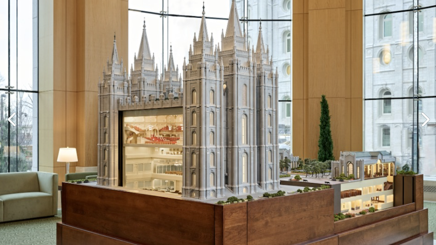 Located on the lower level, this guided 30-minute experience leads guests through full-scale replicas of sacred temple rooms, including a welcome desk, baptistry, instruction room, sealing room, and celestial room. These are not replicas of rooms in the Salt Lake Temple.