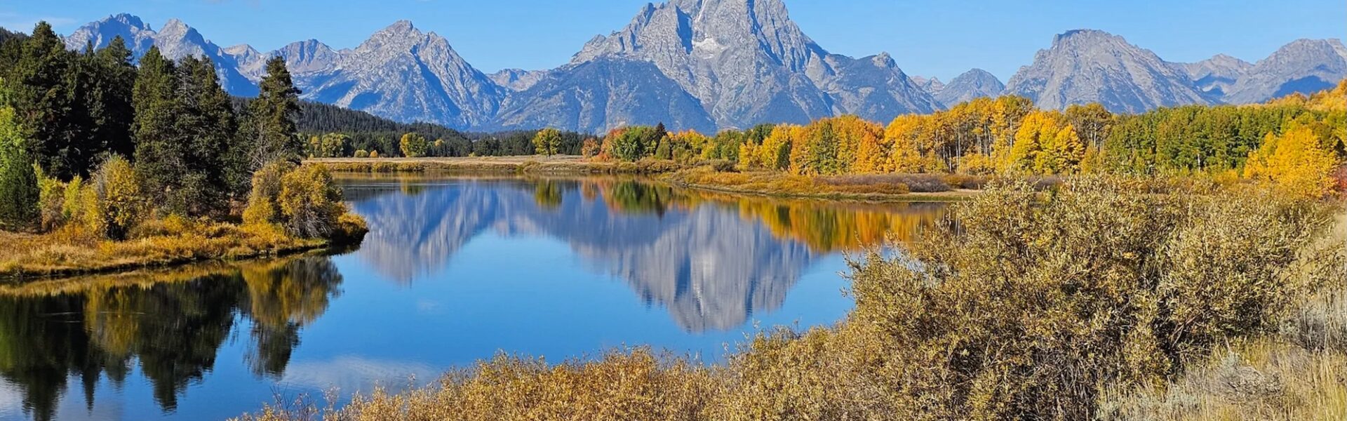 Mount Moran’s reflection ripples across the waters of Oxbow Bend on a crisp fall day in 2025. (Rebecca Huntington/WyoFile)