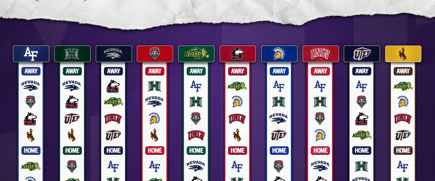 Each team will play four home and four away Conference games over a 13-week schedule, culminating in the Mountain West Football Championship Game, featuring the two teams with the highest Conference winning percentages.