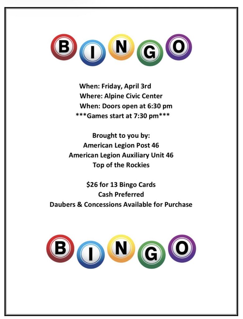Alpine: BINGO With the American Legion Auxiliary