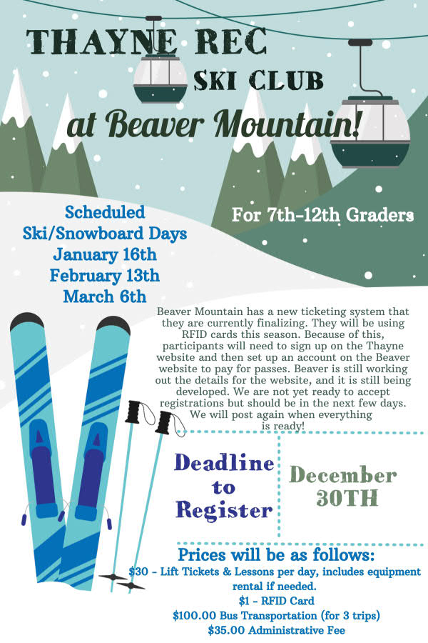 Thayne: Registration Deadline For Thayne Rec Ski Club